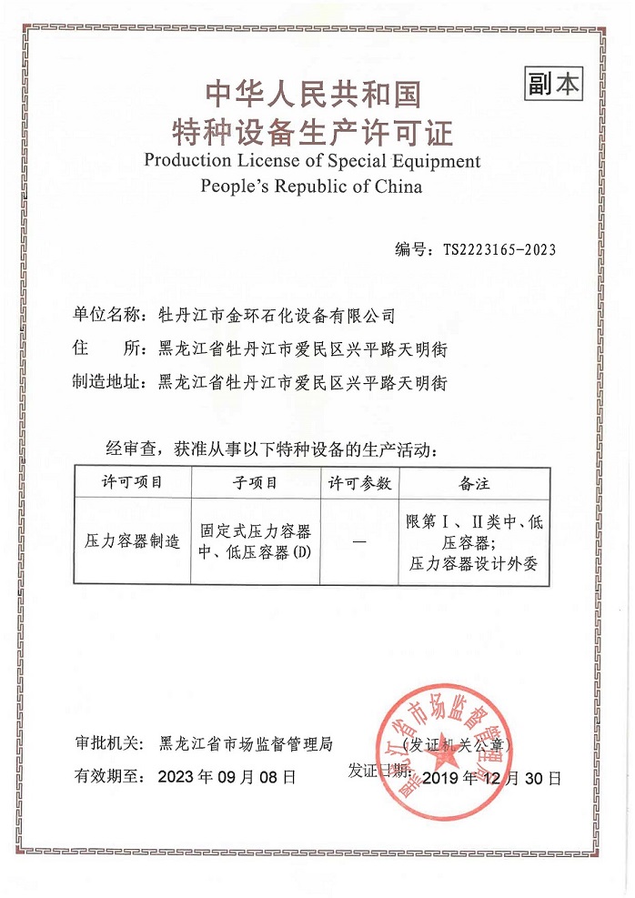 Mudanjiang Jinhuan Petrochemical Equipment CO.,LTD 牡丹江市金環(huán)石化設(shè)備有限公司 版權(quán)所有 m.zhifk.com