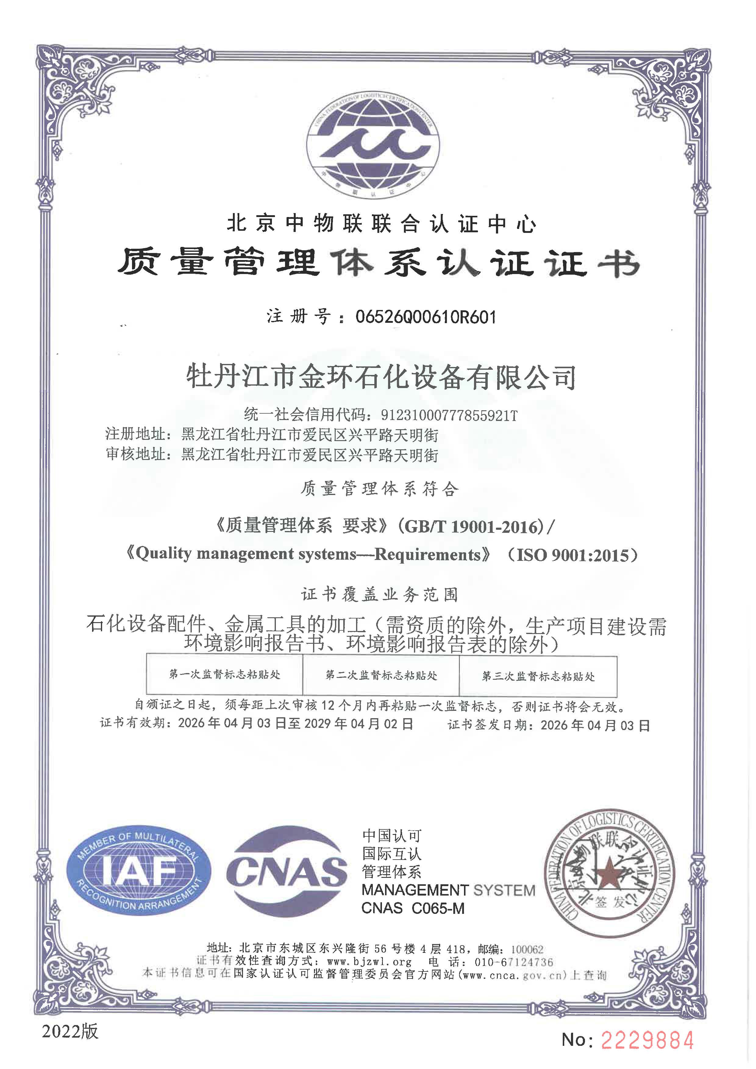 質量管理體系證書