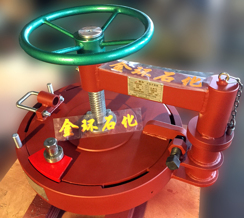 快開(kāi)盲板是用于壓力管道或壓力容器的圓形開(kāi)口上的一種機(jī)械裝置。一般由筒體法蘭、頭蓋、勾圈或卡箍、密封圈、安全聯(lián)鎖機(jī)構(gòu)、開(kāi)閉機(jī)構(gòu)、轉(zhuǎn)臂及短節(jié)(需要時(shí))等部件構(gòu)成。