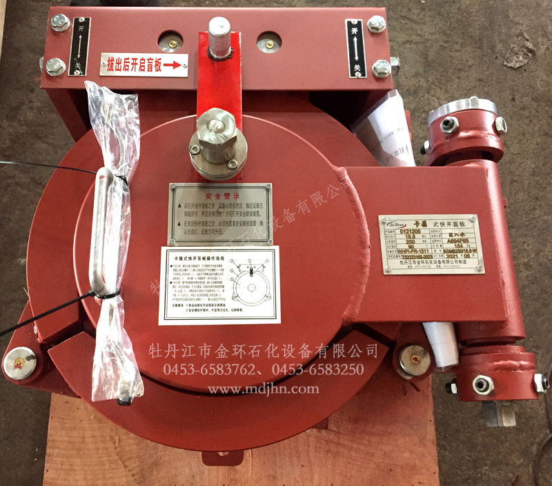 快開盲板是用于壓力管道或壓力容器的圓形開口上的一種機(jī)械裝置。一般由筒體法蘭、頭蓋、勾圈或卡箍、密封圈、安全聯(lián)鎖機(jī)構(gòu)、開閉機(jī)構(gòu)、轉(zhuǎn)臂及短節(jié)(需要時(shí))等部件構(gòu)成。